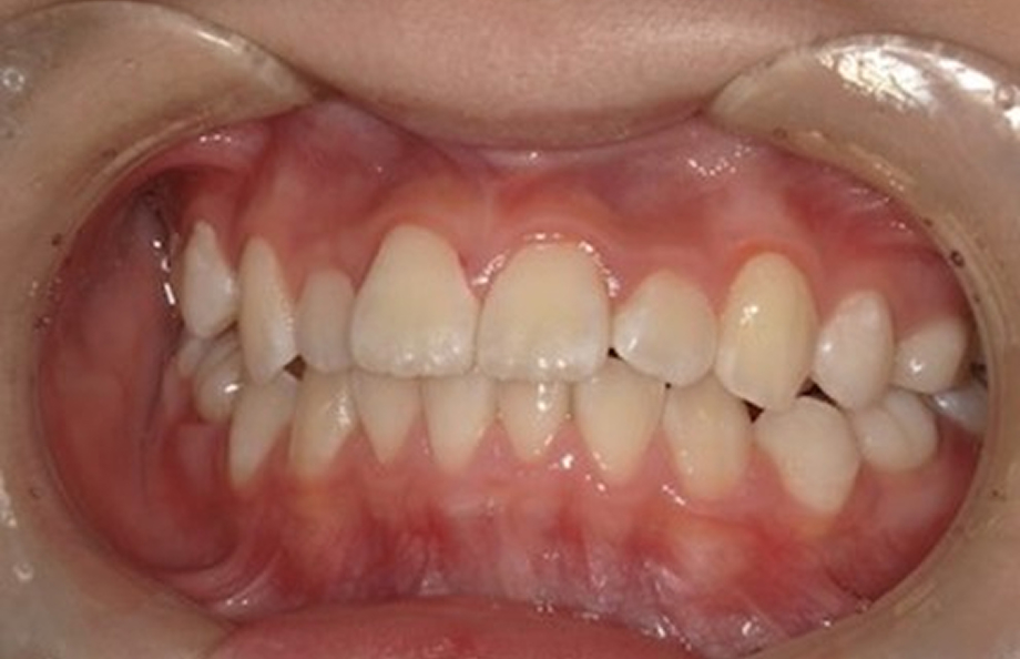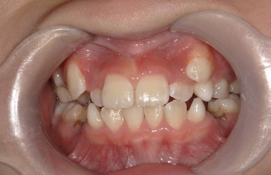 6歳女性の八重歯(上下顎叢生)・上突咬合